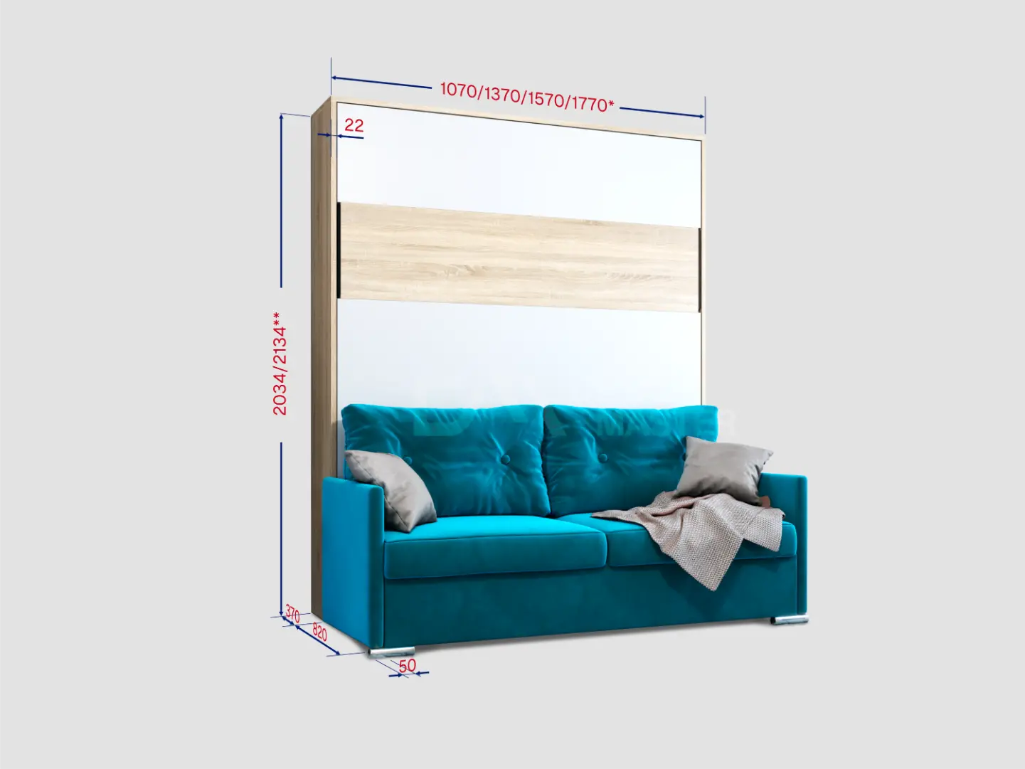Дополнительные опции, такие как: освещение, зарядное устройство, розетки, мягкое изголовье, матрас, мягкий борт - не входят в стоимость шкаф-кровати "Comfort Balance". Вы всегда можете самостоятельно их добавить в опциях или написать менеджеру при оформлении заказа.